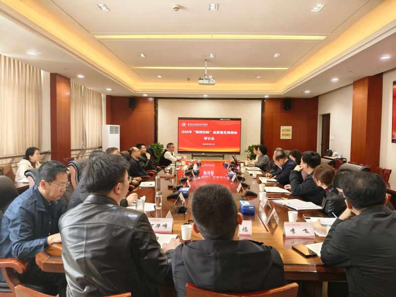 3月27日,学校组织召开2026年“揭榜挂帅”高质量发展指标研讨会。全体在校校领导、各高质量发展指标申报部门负责人参会。会议由高水平建设办公室主任胡彩霞主持。